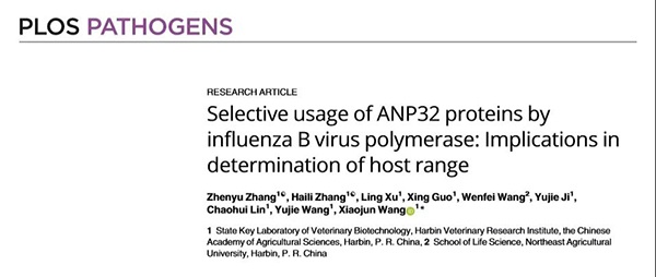 近日,中國農業科學院哈爾濱獸醫研究所王曉鈞團隊在《PLoS Pathogens》雜志刊載了題為 「Selective usage of ANP32 proteins by influenza B virus polymerase: Implications in determination of h
