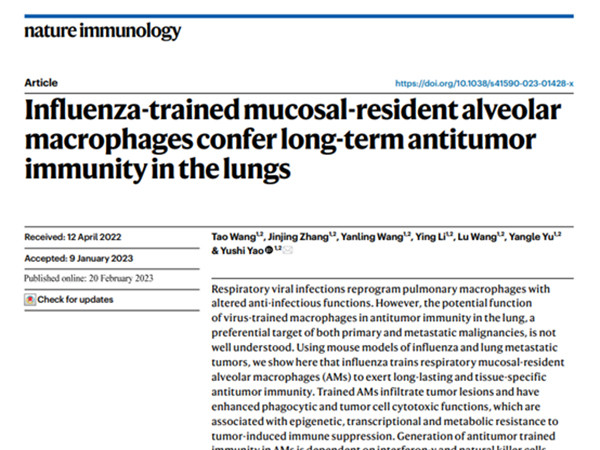 坐標:浙江大學醫學院附屬邵逸夫醫院浙江大學醫學中心良渚實驗室呼吸道病毒感染重塑了肺巨噬細胞的抗感染功能。然而,病毒訓練的巨噬細胞在肺的抗腫瘤免疫中的潛在功能,一個原發性和轉移性惡性腫瘤的優先目標,還沒有很好地理解。近日,浙江大學姚雨石團隊在Nature Immunology (IF=31)在線發表題