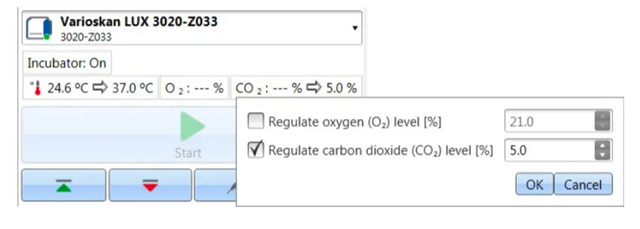 Varioskan LUX的集成氣體控制模塊為細胞動力學測量提供了多項優勢,包括節省實驗臺空間、無數據間隙、通過SkanIt軟件輕松調整氣體濃度、同時或分別控制CO2和O2、良好的氣體濃度穩定性以及運行時氣體濃度記錄的可追溯性。